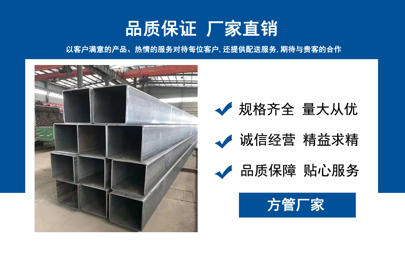 山東方管廠主要生產Q355B方管,Q355C方管,Q355D方管,Q355E方管,低合金方管等,曾多次為客戶解決了各種無縫管疑難問題,經不斷的創新與努力,得到了客戶良好的信譽和稱贊?! 」颈匈|量、服務是我們尋求發展的唯一途徑,為客戶提供極具市場競爭力的高品質產品,愿與客戶一起進步、共享成功!  我公司秉承“誠信經營,服務周到”的經營原則,全力以赴,給客戶周到滿意的服務。“誠信、專業、認真、服務”是我們的宗旨。幾年來我們用專業的技術和周到的服務贏得了廣大客戶和供應商的信賴,與各大企業有著廣泛的合作和聯系,受到了業內好評。我們會以優良的產品、優惠的價格、優先的貨期、優良的服務,珍惜客戶給予我們的每一個機會。...